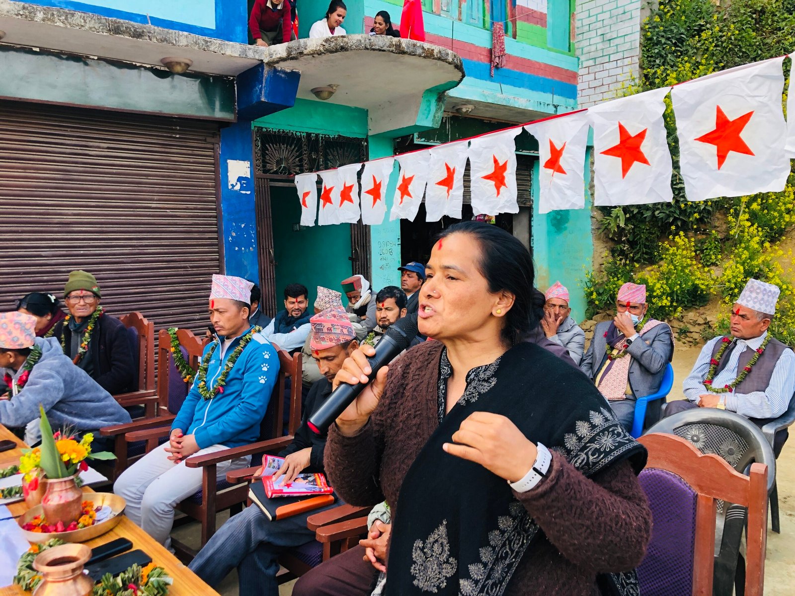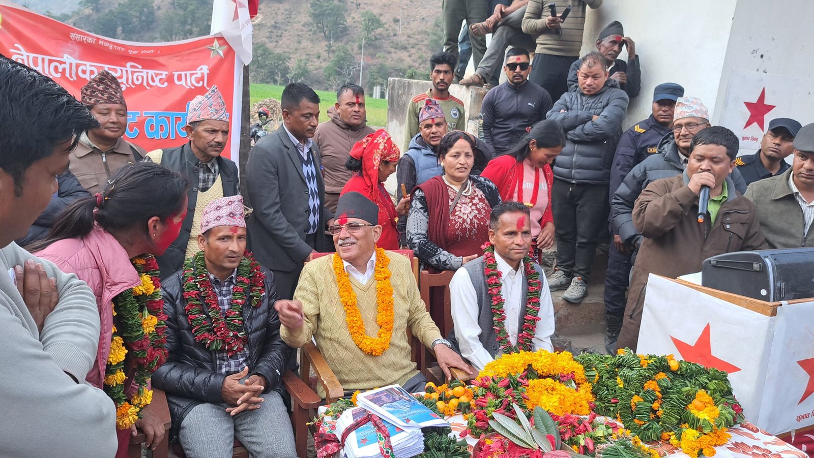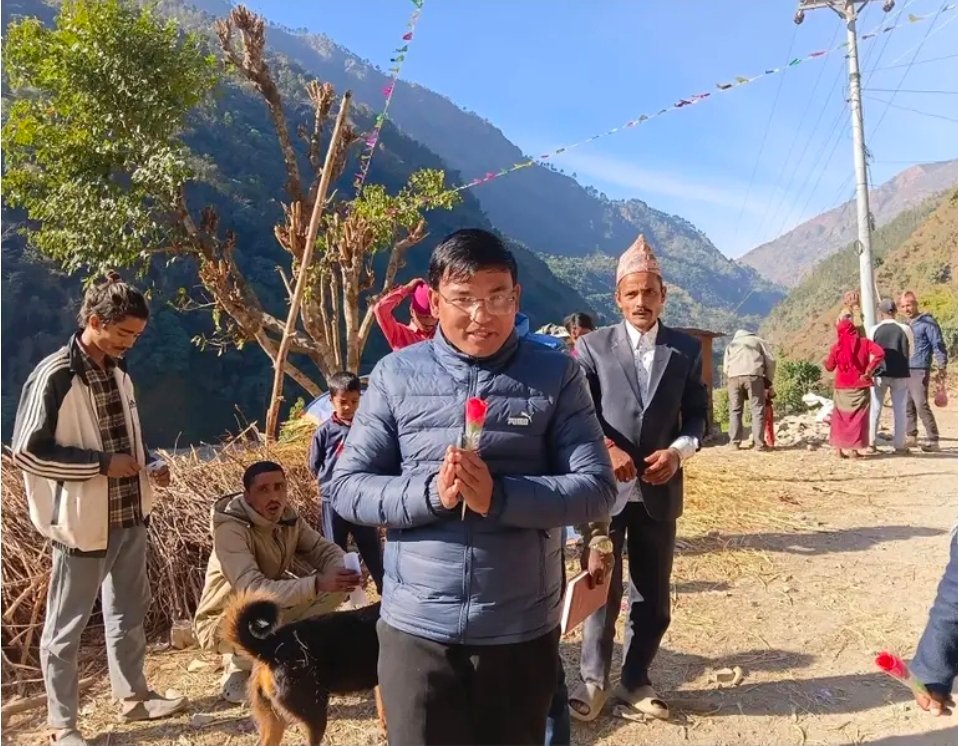 गुलाफको फुल लिएर गाउँगाउँमा पुगे नेकपा