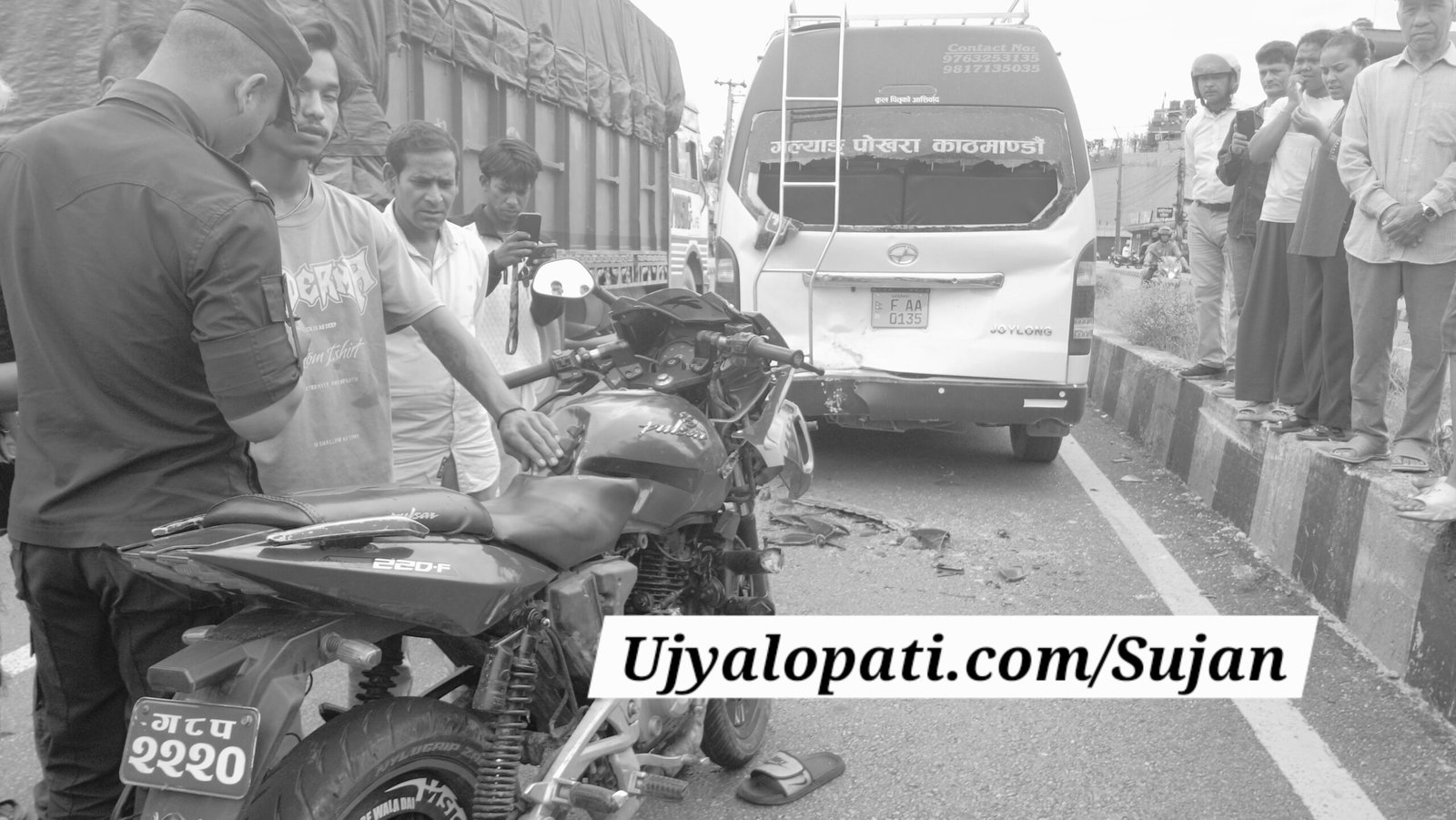 एकाबिहानै पोखरामा हाइस र बाइक ठोक्कियो, बाइक