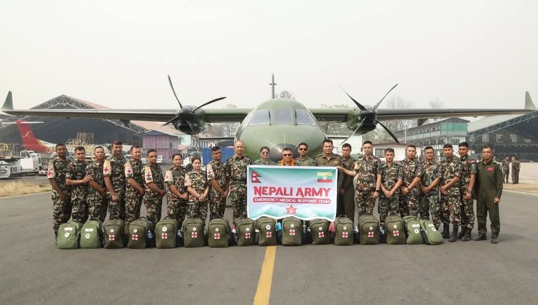 भुकम्प प्रभावितलाई राहत सामग्री बोकेर नेपाली सेनाको