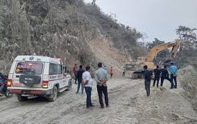 सिद्धबाबामा खसेको पहिरोले बुटवल पाल्पा सडक अवरुद्ध