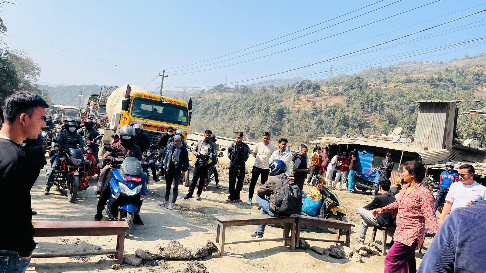 धादिङको सातकिलामा स्थानीयले गरे बाटो बन्द यात्रुहरू