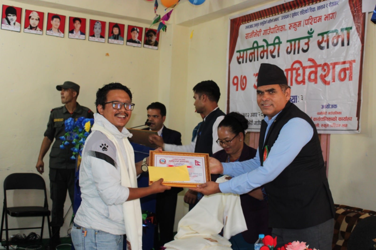 सानीभेरी गाउँपालिका द्वारा पत्रकार महतारा सम्मानीत