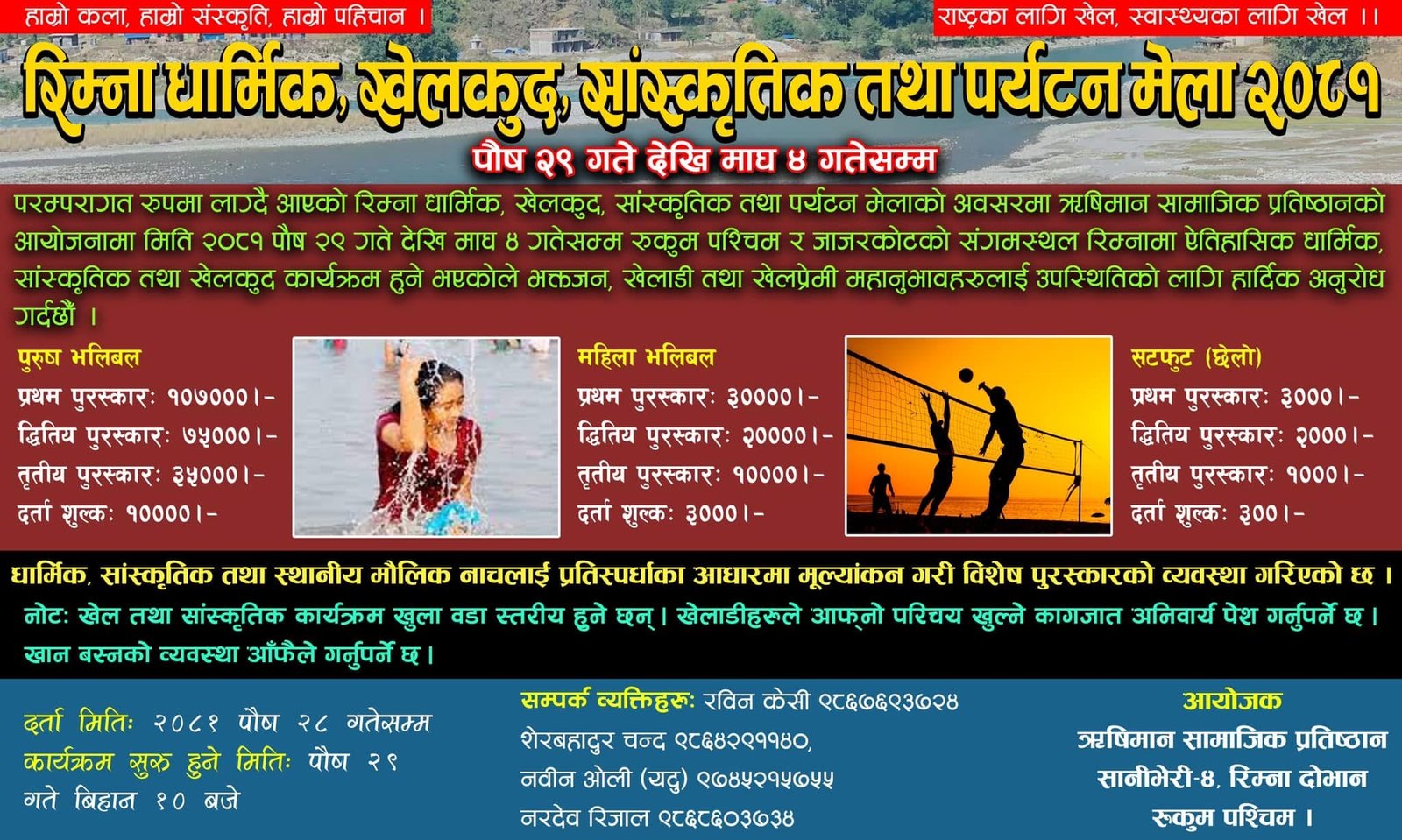 भोलिदेखि सानिभेरीको रिम्नामा धार्मिक मेला लाग्ने