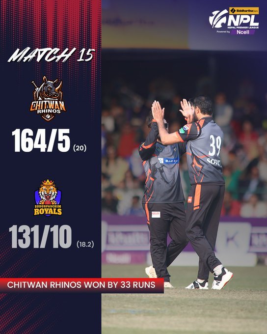 एनपीएलः दोस्रो खेलमा चितवन राइनोज बिजयी