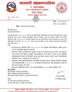 काठमाडौं महानगरपालिकाले जेनजी आन्दोलनका कारण ठप्प भएका विद्यालयहरू खोल्ने र पर्सिदेखि पठनपाठन सुचारु गर्न निर्देशन दिएको हाे ।