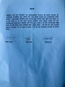 विज्ञप्ति मा उल्लेख गरिएको छ ।, , सडक सोरपुछ तथा मर्मत का लागि मनोमानी तरिकाले गरिएको टेन्डर तत्काल रद्ध गरी असोज १० गते भित्र १४ वटै वडाहरुमा सवारी आवतजावत मा सजिलोका लागि दशैं अघि नै सडक मर्मत गरी सुचारु गर्न अनुरोध गरिन्छ । यदी दशैं अगाडी सडक मर्मत नभएमा नगर प्रमुख, उपप्रमुख सहित १४ वटै वडाहरुमा ताला लगाईने घोषणा गरिन्छ ।