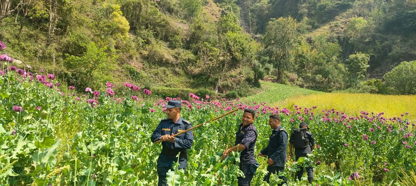 लागुऔषध विरुद्ध रुकुम प्रहरीको सक्रियता : ५१८ रोपनीमा लगाएको अफिम खेती नष्ट