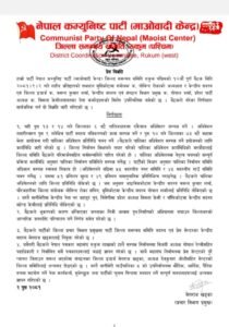 माओवादी केन्द्र रुकुम पश्चिमले पुस १३ र १४ गते ६ वटै पालिकामा अधिवेशन गर्ने