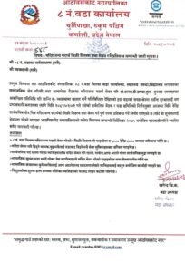 वडा कार्यालयले मदिरा विक्रि वितरणमा रोक लगाएको पत्र