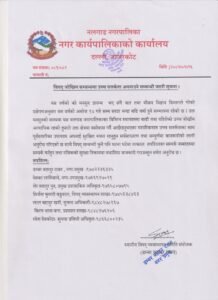 विपदजन्य घटना घटेमा तुरुन्तै नगरपालिकाको नगर प्रमुख डम्बर बहादुर रावत, उपप्रमुख देवका लामिछाने, प्रमुख प्रशासकीय अधिकृत शेर बहादुर पुन र विपद व्यवस्थापन शाखामा कार्यरत सिर्जना कुमारी बडुवाललाई जानकारी अथवा सम्पर्क गर्न नगरवासीहरु लाई आग्रह गरिएको छ ।