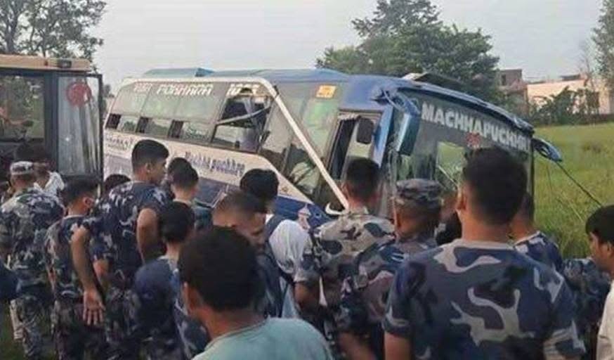 नेपालगञ्ज जाँदै गरेको बस कपिलवस्तुमा दुर्घटना, १०